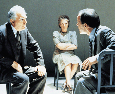 It is also brilliant theatre. The three characters – Bohr, Heisenberg and Bohr’s wife Margrethe – are on stage nearly all of the time. Notionally, they are in the Bohrs’ house, with three chairs as their only props. But they grip us continually with words, tones, gestures, movement and lights. The professional magic of the Royal National Theatre, embodied in David Burke [Bohr], Sara Kestelman [Margrethe] and Matthew Marsh [Heisenberg], is mediated by the refined direction of Michael Blakemore. But Frayn’s sharp, spare script is the score for an intricate contrapuntal trio, played briskly back and forth in crisp sentences that merge into a sparkling stream of conversation, confrontation and debate among three old friends.